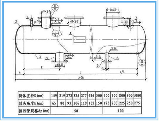 压缩空气分气包: 钢管¢89*4、管路DN50法兰式链接,基本参数:最大输入压力:1.6MPa 输出压力:1.6MPa 耐压强度:2.4MPa
